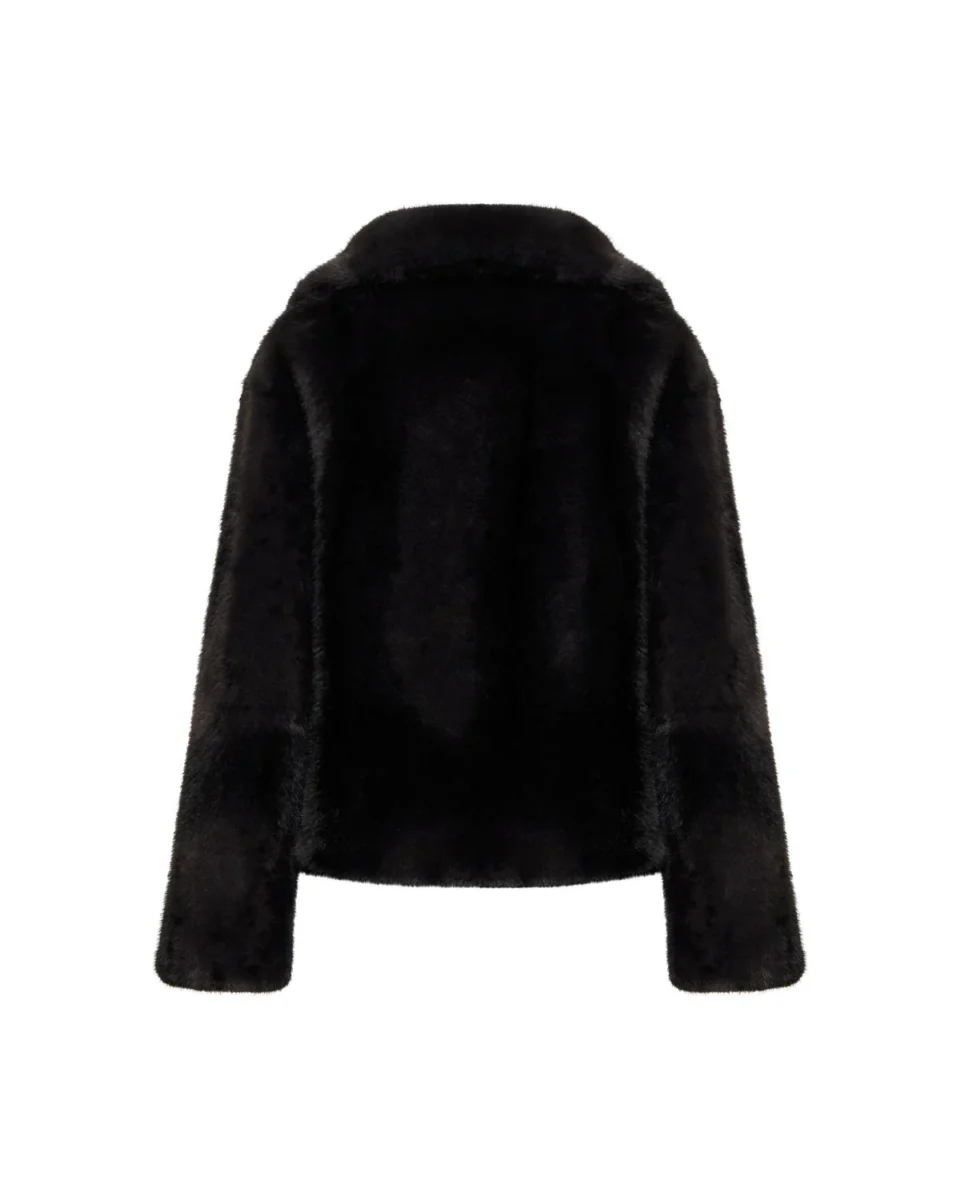 Cappotto corto effetto pelliccia con chiusura nascosta. Texture morbida e taglio minimal per un look essenziale.