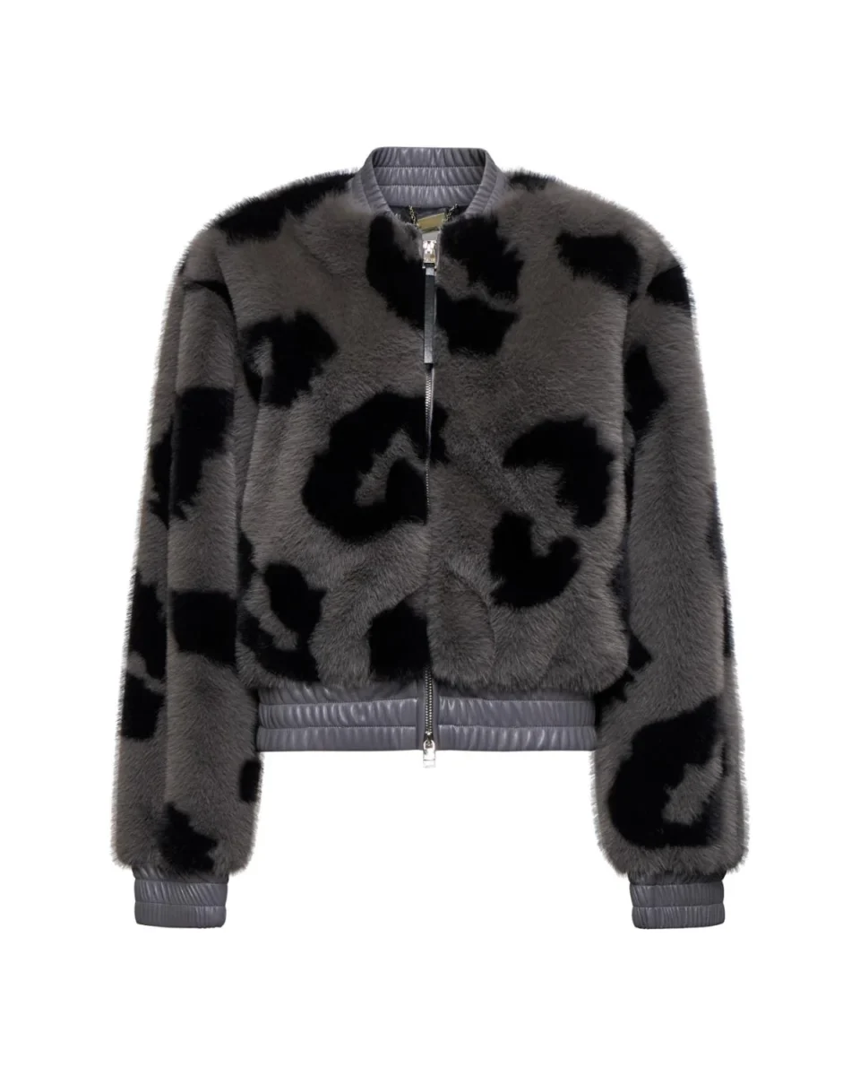 Short faux fur bomber jacket with an irregular print and front zip. A bold piece with an urban soul. GPA25013PL 100% POLYESTER