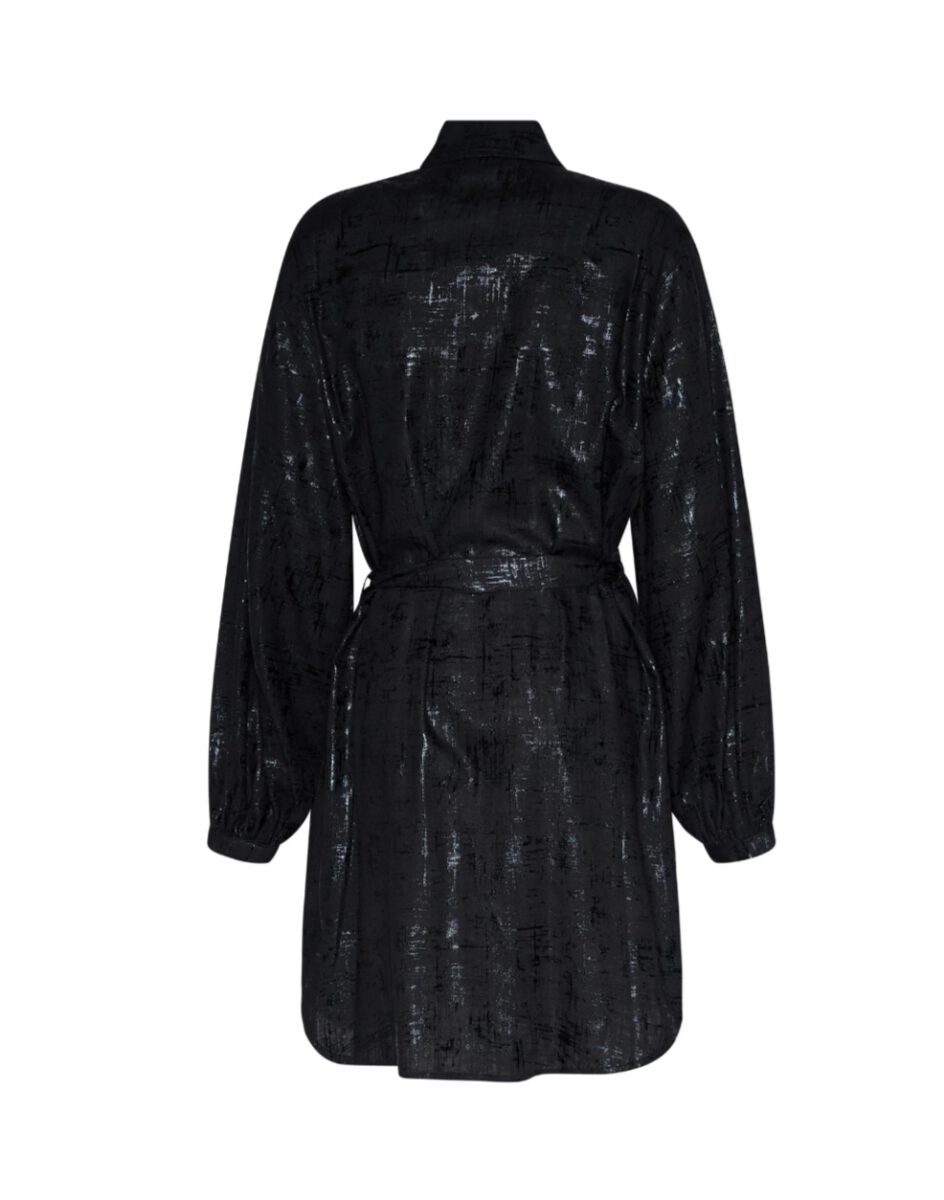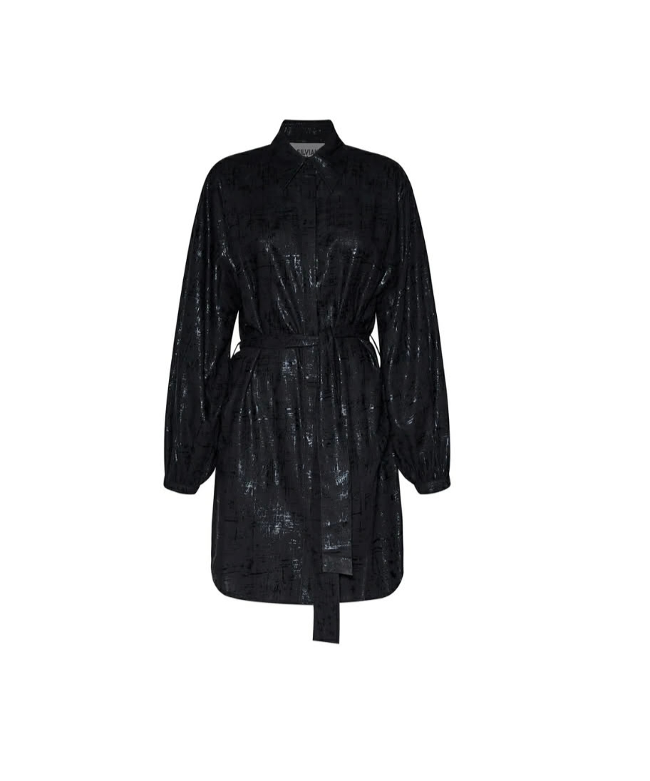 Ένα εκλεπτυσμένο και κομψό γυναικείο φόρεμα-πουκάμισο, με διακοσμημένη επιφάνεια που προσθέτει βάθος και ένταση στο σχέδιο. Ο κλασικός γιακάς και η ασορτί ζώνη ορίζουν μια αρμονική και σύγχρονη δομή, ενώ τα μακριά μανίκια προσθέτουν ισορροπία και κομψότητα. Ένα μοντέλο σχεδιασμένο για να εκφράζει ένα ξεχωριστό και εκλεπτυσμένο στυλ.