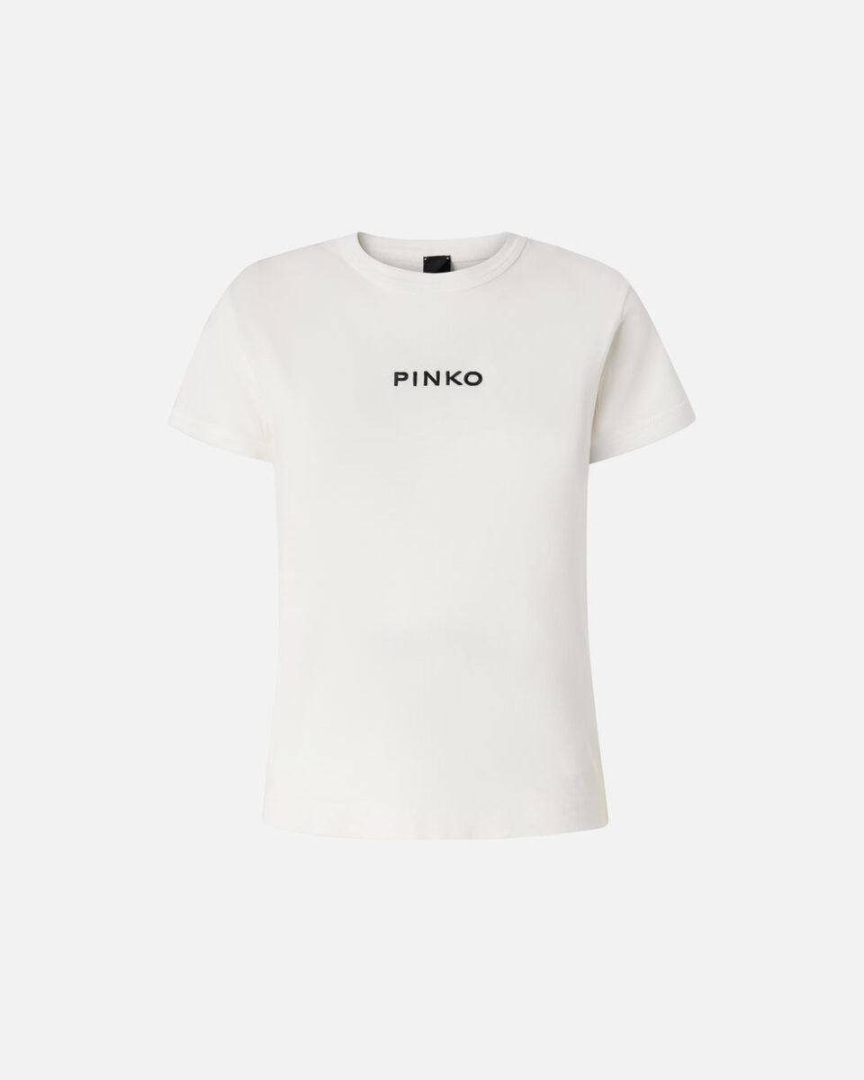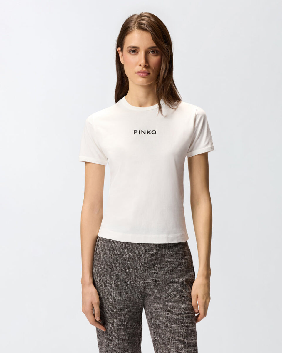 Κοντομάνικο t-shirt σε ελαφρώς στενή γραμμή από βαμβακερό ζέρσεϊ με κεντημένο λογότυπο PINKO μπροστά. Εμβληματικό και ευκολοφόρετο, αυτό το t-shirt θα προσθέσει σε κάθε σας πρωινό look μια προσωπική πινελιά που δεν θα περάσει απαρατήρητη